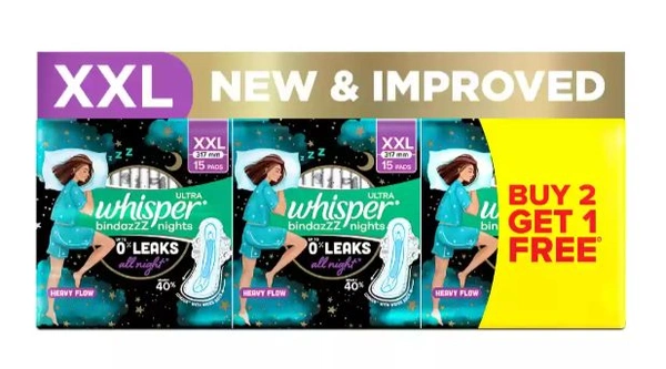 whisper bindazz night XXL+buy 2 get 1(30+15pcs)